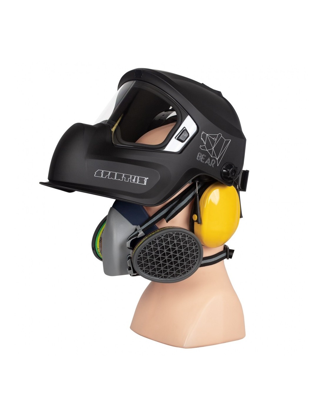 Przyłbica SPARTUS® BEAR jest bezpiecznym rozwiązaniem do stosowania z różnymi rodzajami półmasek ochronnych oraz nausznikami. Dzięki swojemu ergonomicznemu kształtowi przyłbica zapewnia wygodę użytkowania nawet przy jednoczesnym noszeniu półmaski i nauszników.