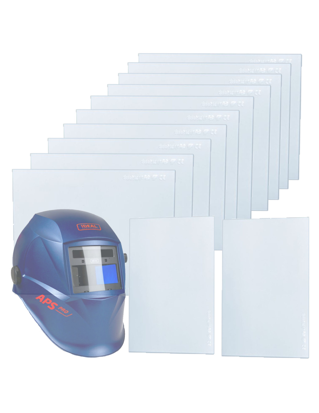 Zestaw szybek ochronnych wykonanych z poliwęglanu przeznaczone do przyłbicy spawalniczej firmy Ideal model: APS-510G.