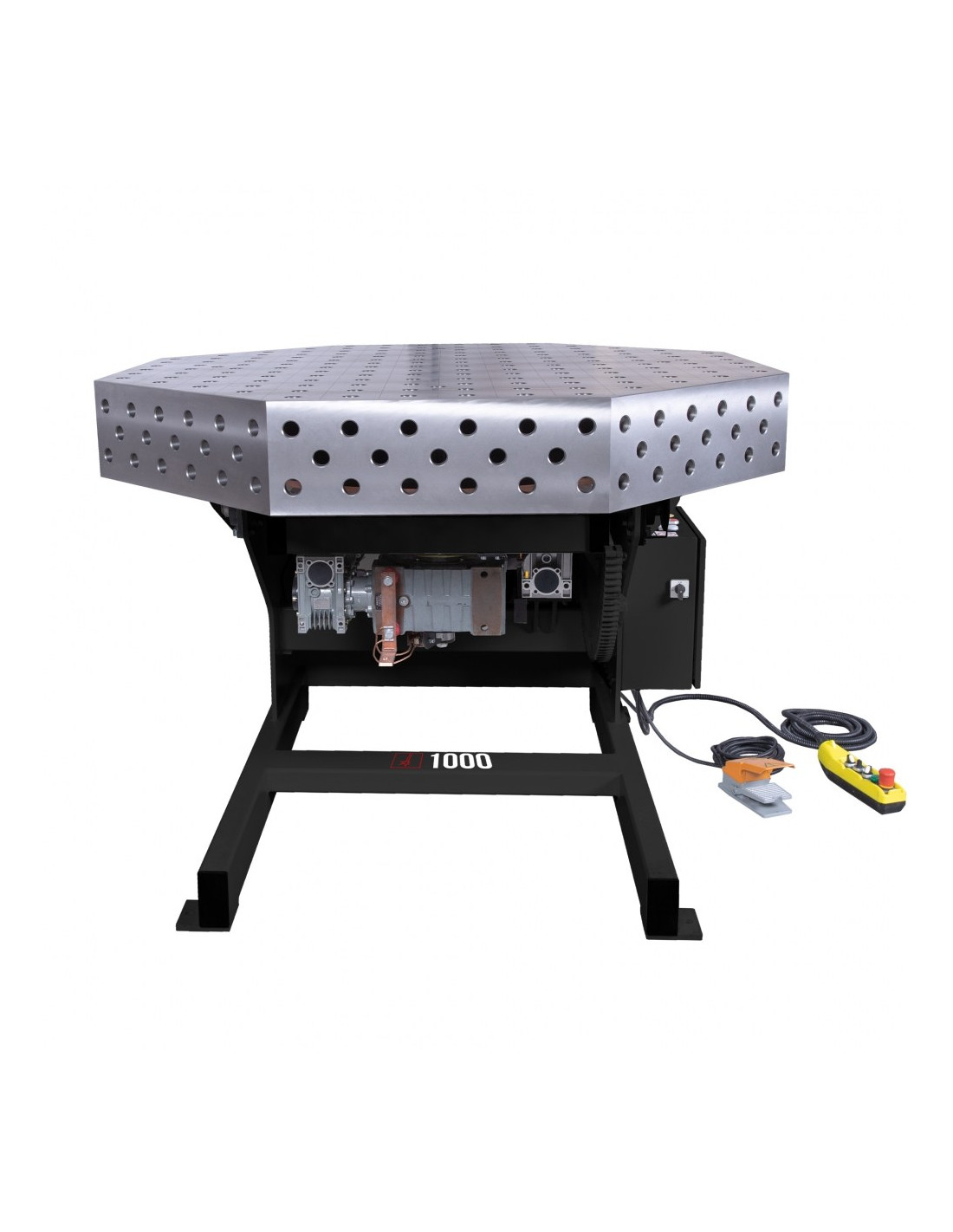 Stół z pozycjonerem umożliwia dostosowanie pozycji stanowiska pracy do potrzeb pracownika. Pozycjoner daje możliwość obrotu blatu roboczego ze zmienną prędkością w obu kierunkach oraz zmianę kąta pochylenia ramy głównej. Sterowanie odbywa się za pomocą pedału nożnego. Samohamowny napęd zapewnia zatrzymanie tarczy obrotowej w dowolnej pozycji.