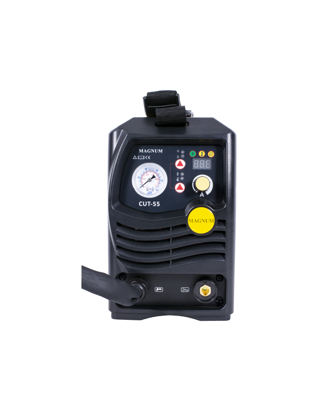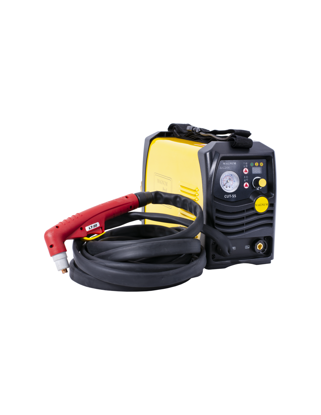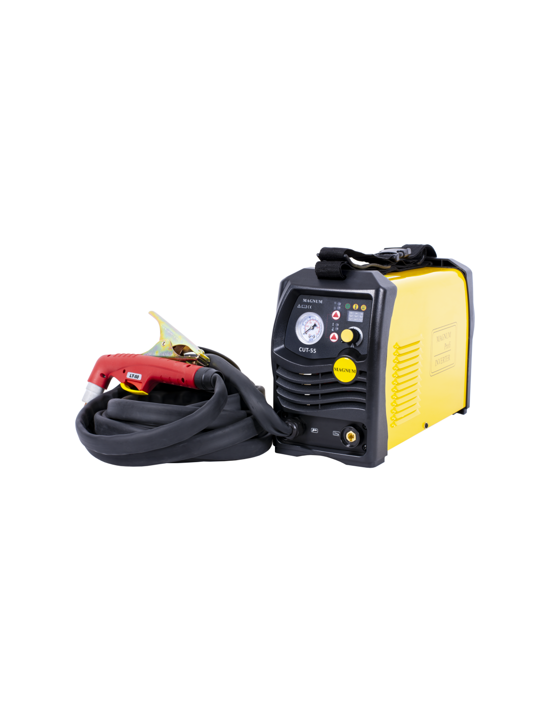 Przecinarka plazmowa marki MAGNUM CUT-55przeznaczone jest do ręcznego lub maszynowego cięcia plazmą powietrzną elementów przewodzących prąd elektryczny, wykonanych ze stali węglowych i stopowych, aluminium i jego stopów, mosiądzu, miedzi a także żeliwa. Urządzenie wyposażone jest w palnik umożliwiający cięcie w miejscach trudno dostępnych i we wszystkich możliwych pozycjach.Przecinarka plazmowaCUT-55posiada bezstykowe zajarzenie łuku oraz łuk pilotujący. Przecinarka może być zastosowana do prac warsztatowych, remontowych, a także cięcia złomu. Posiada funkcję cięcia materiałów ażurowych, bez konieczności ciągłego ponownego odpalania łuku po każdym otworze. Można ciąć np. siatkę metalową w sposób ciągły. Urządzenie MAGNUM CUT-55 zostało zbudowane w oparciu o najnowszą technologię wykorzystującą tranzystory IGBT, co przekłada się na zmniejszenie zakłóceń elektromagnetycznych, małe straty mocy, zwiększenie wydajności i niezawodności źródła prądu oraz zmniejszenie zużycia energii.Przecinarka wyposażona jest w przeciążeniowe zabezpieczenie termiczne. Jej zaletą jest niska masa oraz płynna regulacja prądu cięcia zapewniająca wysoką jakość cięcia materiału.