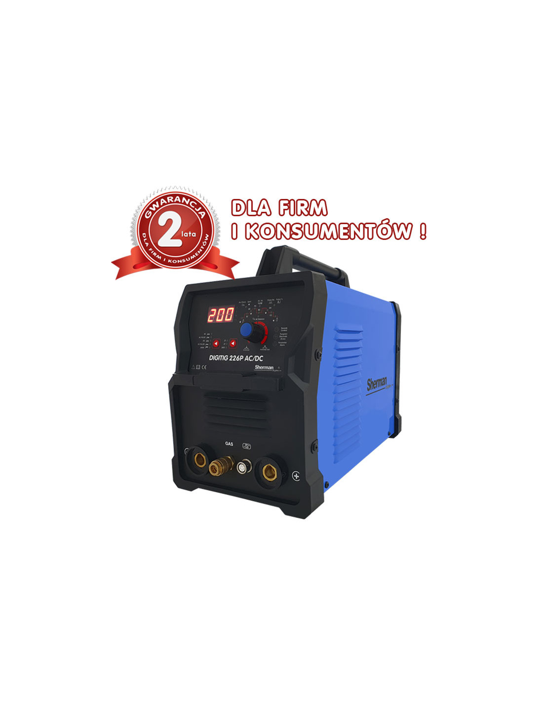 Cyfrowa spawarka DIGITIG 226P AC/DC służy do spawania ręcznego metodą TIG z jonizacyjnym zajarzaniem łuku (TIG HF) stali jakościowych, aluminium i innych metali kolorowych prądem stałym oraz przemiennym. Urządzenie wyposażone jest w opcję spawania metodą MMA (elektrodą otuloną) z dostępną regulowaną funkcją ARC FORCE. Spawarka umożliwia pełną cyfrową regulację i sterowanie parametrami pulsu oraz częstotliwości prądu AC. Ponadto możliwa jest regulacja narastania i opadania prądu oraz przedwypływu i powypływu gazu oraz spawanie punktowe. Sterowanie urządzeniem może odbywać się zdalnie przy pomocy pedału sterowniczego (opcja).