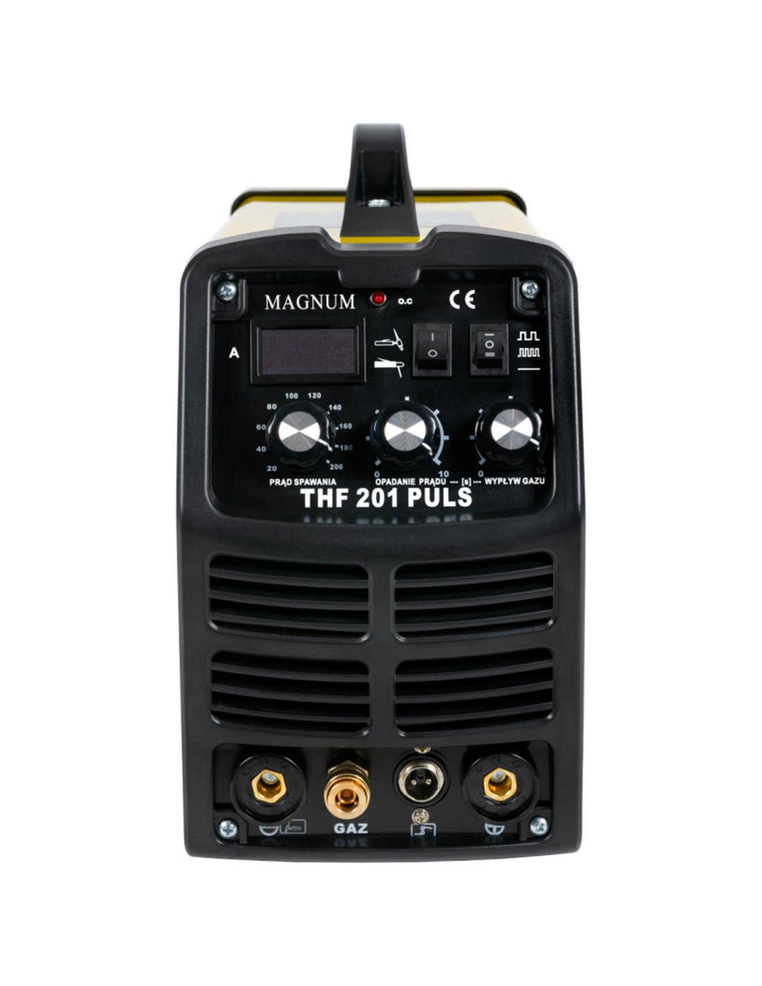 MAGNUM THF 201P to inwerterowe lekkie urządzenie marki MAGNUM przeznaczone do spawania metodą TIG HF (bezstykowe zajarzanie łuku spawalniczego) oraz metodą MMA - elektrodami otulonymi. Spawarka zasilana jest z sieci jednofazowej 230 V, posiada wysoki 60% cykl pracy przy prądzie 200 A. Urządzenie przeznaczone jest do wszelkiego rodzaju prac spawalniczych w warsztatach ślusarskich, naprawczych itp.