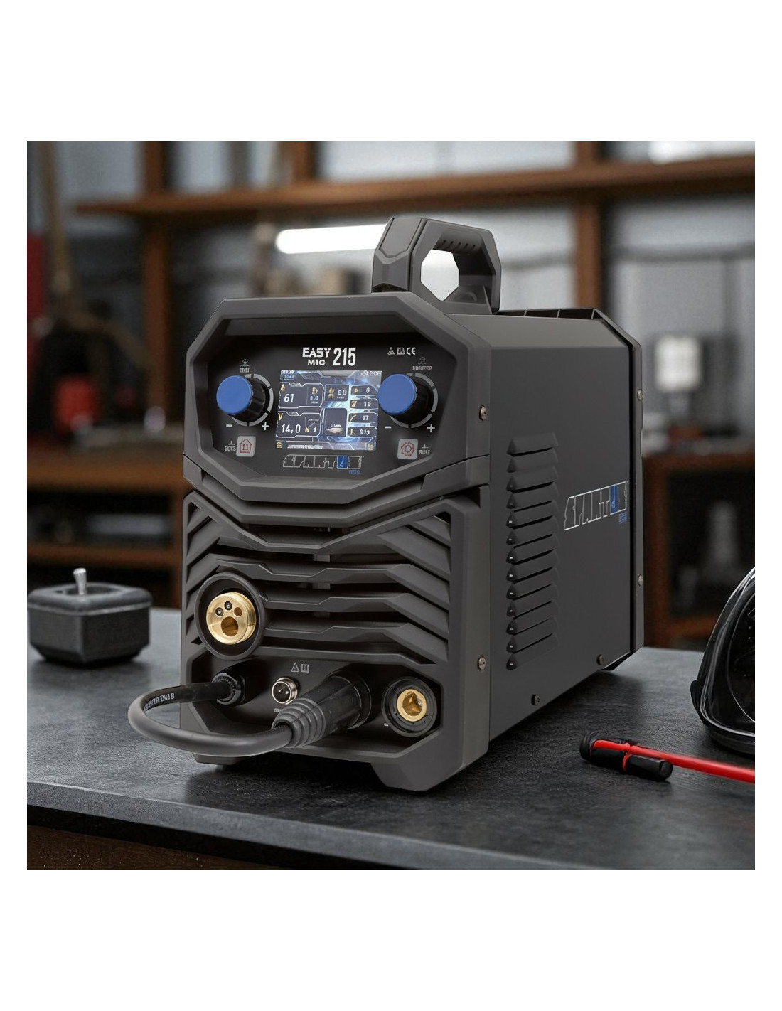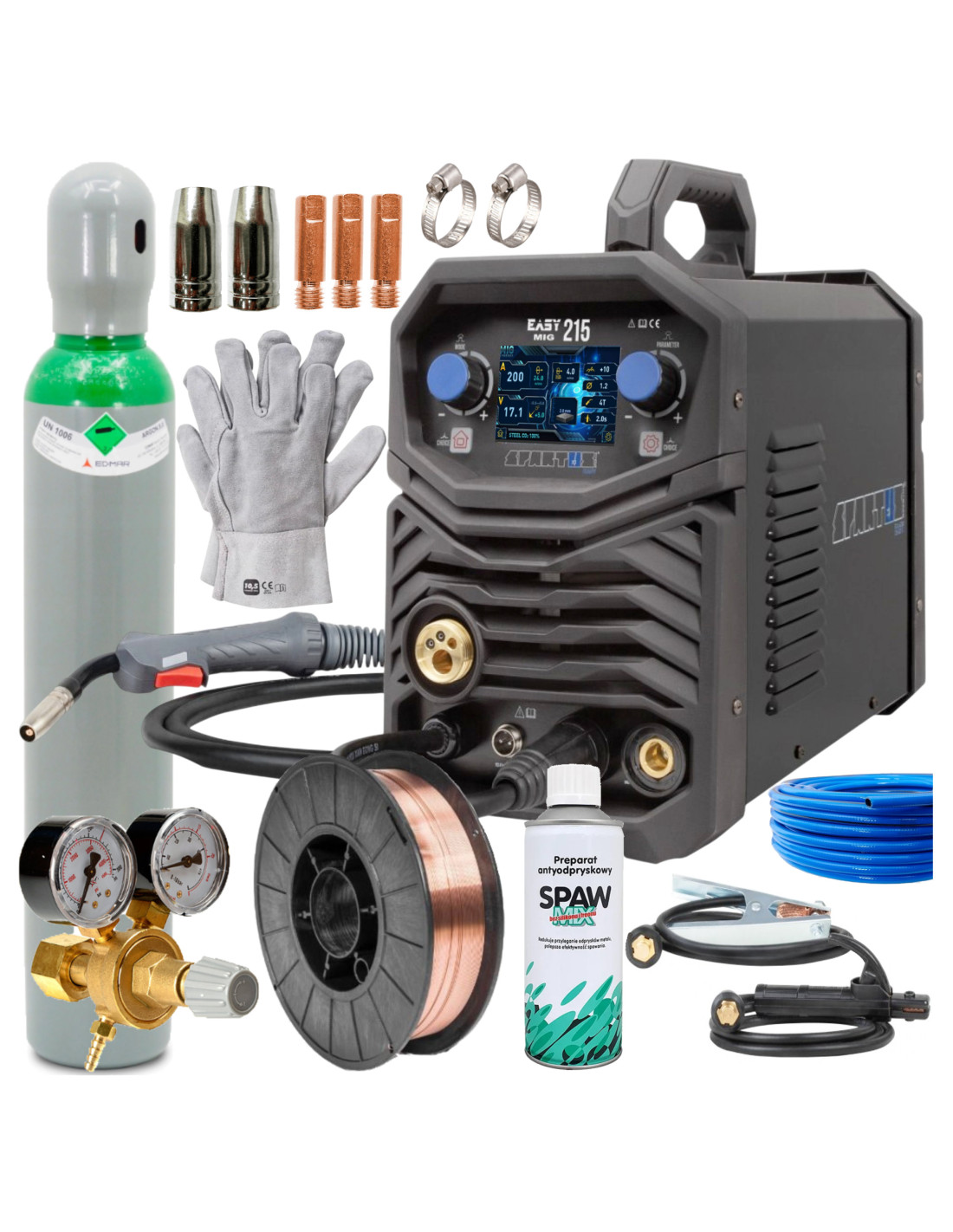 Spawarka EASYMIG 215 SPARTUS-SYNERGICZNY MIG Z WYŚWIETLACZEM LCD ⚡+ KOPLETNY ZESTAW SPAWALNICZY⚡