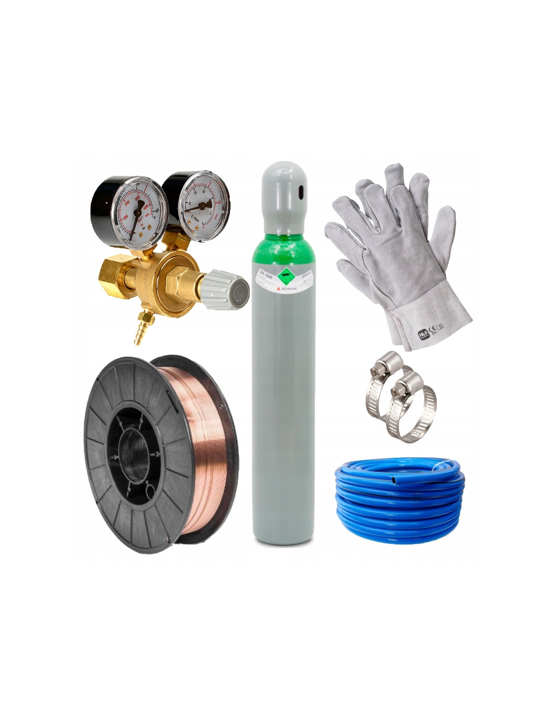 - butlę pełną z gazem mix ( mieszanką) Argon+co2 - (nowa) z kołpakiem ochronnym zabezpieczającym zawór gazu