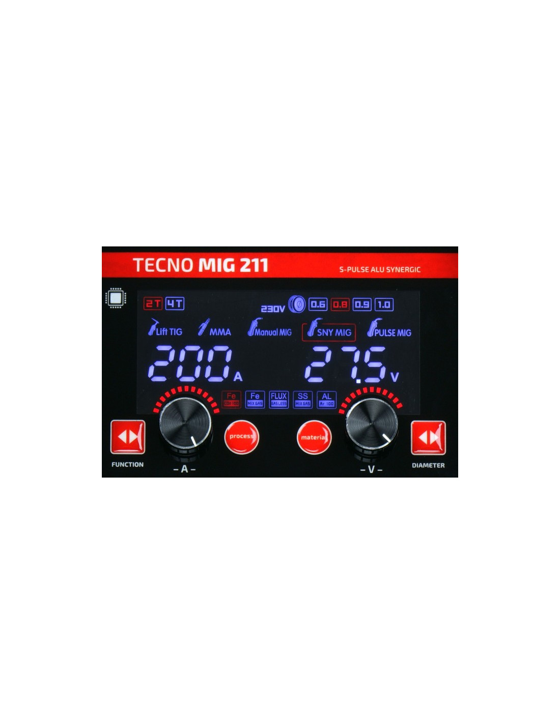 PULS MIG w urządzeniu TECNO MIG 211 S-PULSE zaprojektowany jest do spawania aluminium pojedynczym pulsem drutem 1,0 mm, umożliwia uzyskanie lepszej spoiny niezależnie od pozycji spawania oraz zmniejszenie ilości rozprysków.