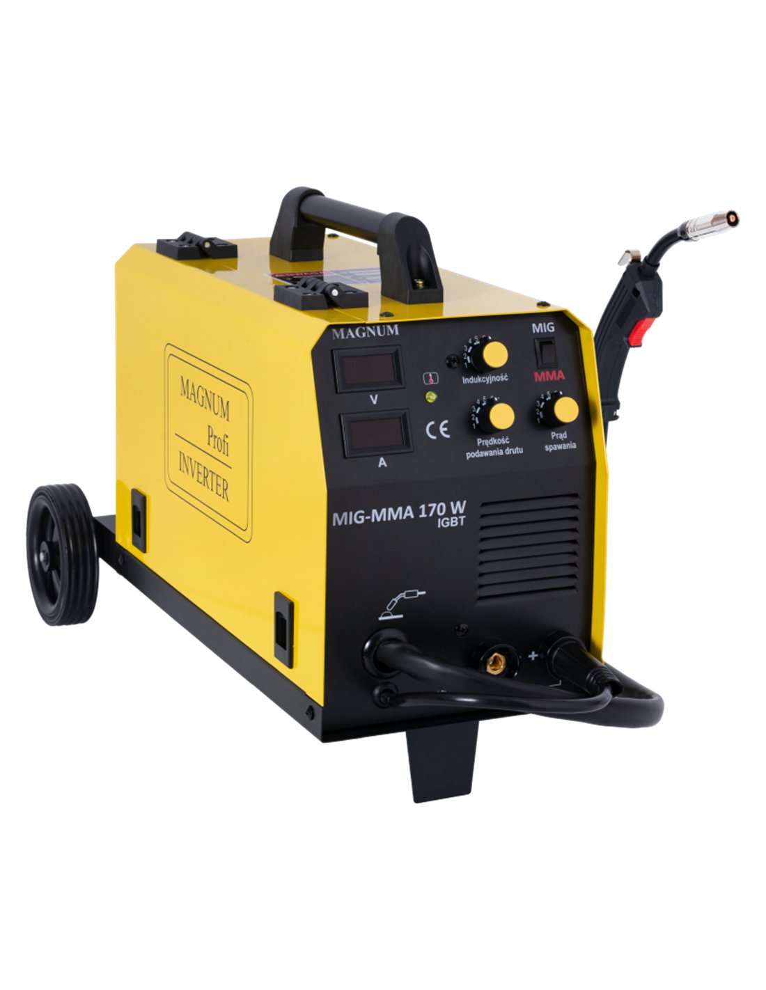 Inwertorowy półautomat spawalniczy do spawania metodą MIG-MAG, MIG PULS, MMA, TIG LIFT oraz FLUX. Prąd spawania 200A. Zasilanie 230V. Średnica drutu spawalniczego 0,6-1,0 mm. Podajnik drutu 2-rolkowy.