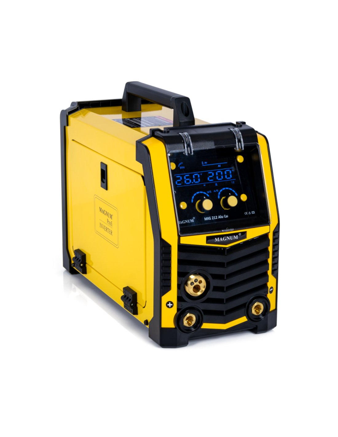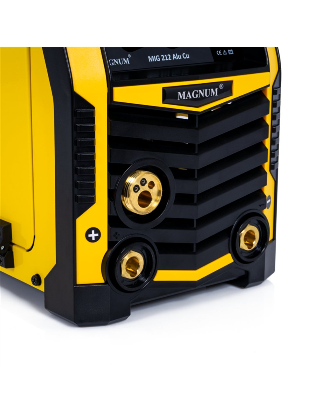 Profesjonalny inwerterowy półautomat spawalniczy MAGNUM MIG 212 ALU CU zaprojektowany do spawania stali oraz stali nierdzewnej. To idealne rozwiązanie zarówno dla profesjonalistów, jak i amatorów ceniących jakość i wygodę. Urządzenie zapewnia doskonałą kontrolę parametrów spawania dzięki synergicznemu programowi oraz możliwości spawania w trybach MIG/MAG, MMA i TIG LIFT. PosiadaDzięki technologii IGBT, spawarka charakteryzuje się wysoką wydajnością oraz energooszczędnością.