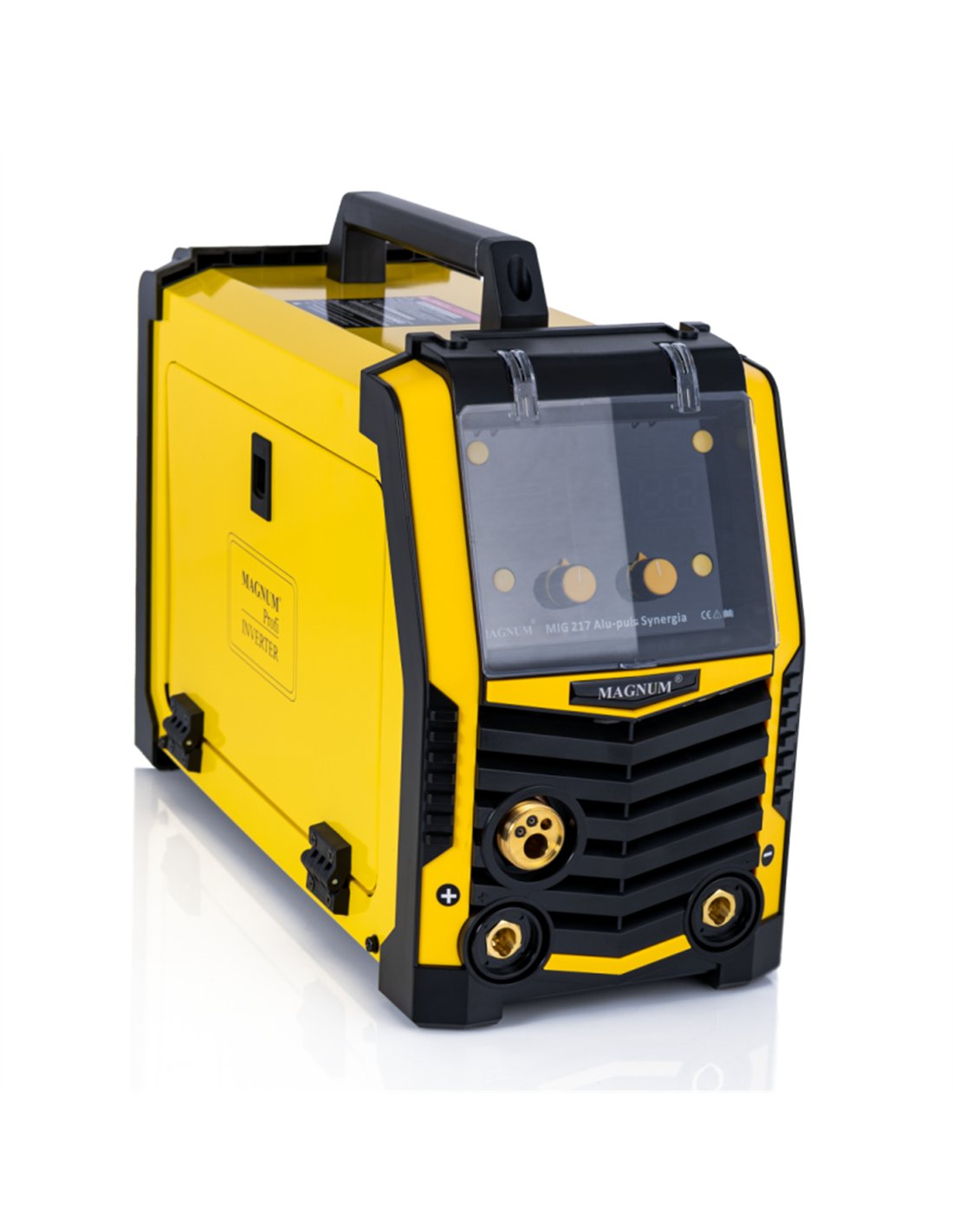 Profesjonalny inwerterowy półautomat spawalniczy MAGNUM MIG 217 ALU-PULS SYNERGIA zaprojektowany do spawania stali oraz stali nierdzewnej. To idealne rozwiązanie zarówno dla profesjonalistów, jak i amatorów ceniących jakość i wygodę. Urządzenie zapewnia doskonałą kontrolę parametrów spawania dzięki synergicznemu programowi oraz możliwości spawania w trybach MIG/MAG, MMA i TIG LIFT. Dzięki technologii IGBT, spawarka charakteryzuje się wysoką wydajnością oraz energooszczędnością.