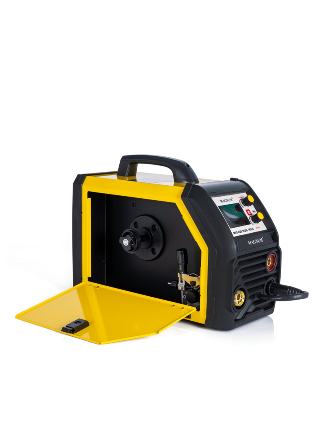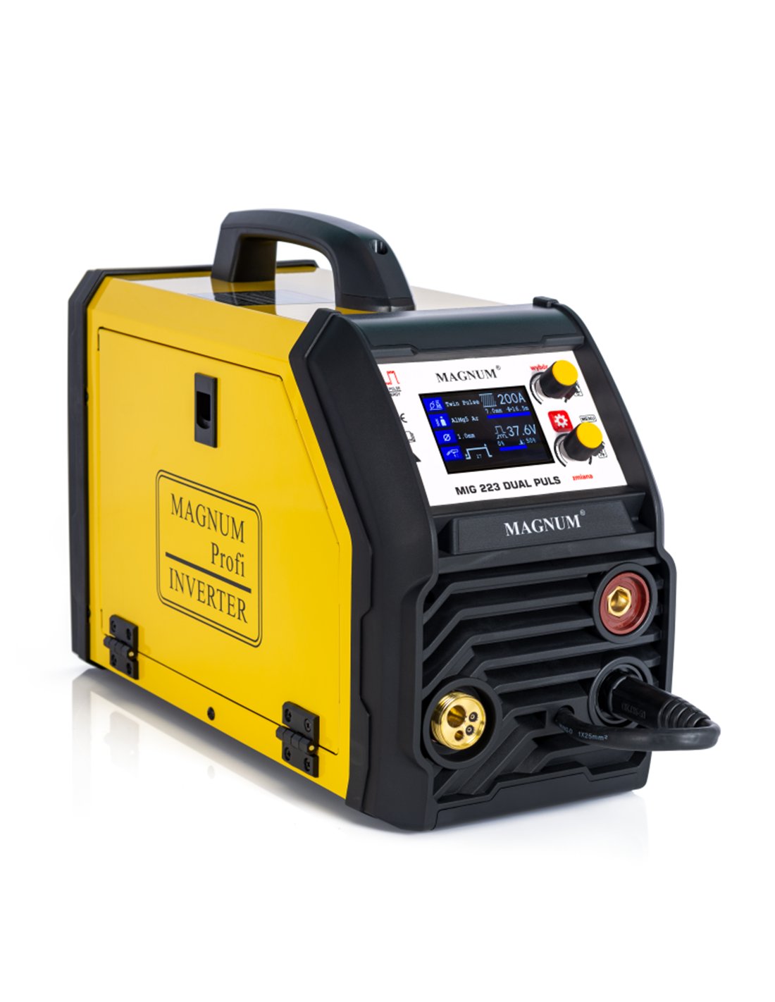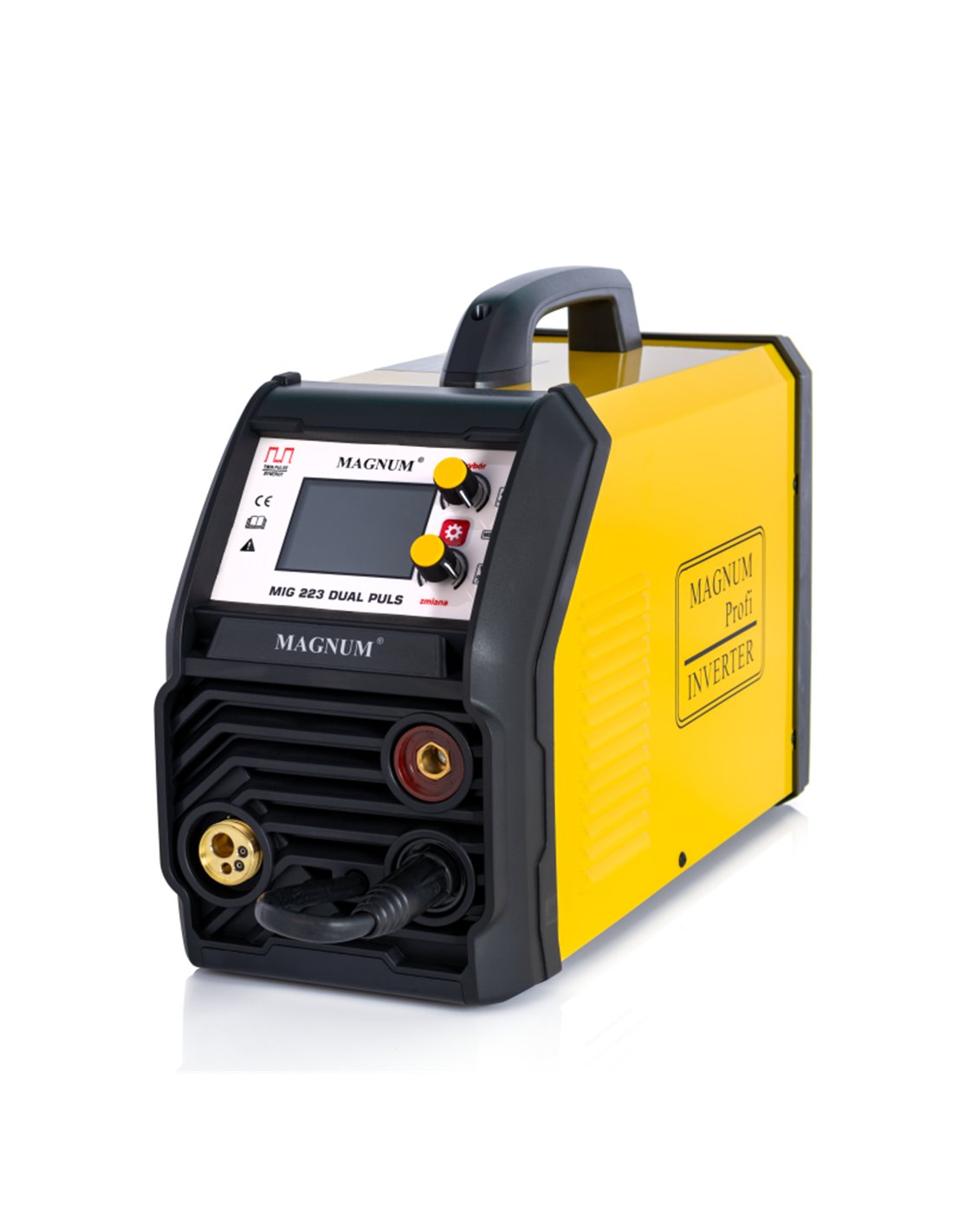 MIG 223 DUAL PULS z wyświetlaczem LCD to wszechstronne i zaawansowane technologicznie urządzenie spawalnicze, przeznaczone do spawania metodami MIG-MAG, MMA i TIG LIFT. Idealne do ręcznego, elektrycznego spawania szerokiego zakresu materiałów, w tym: