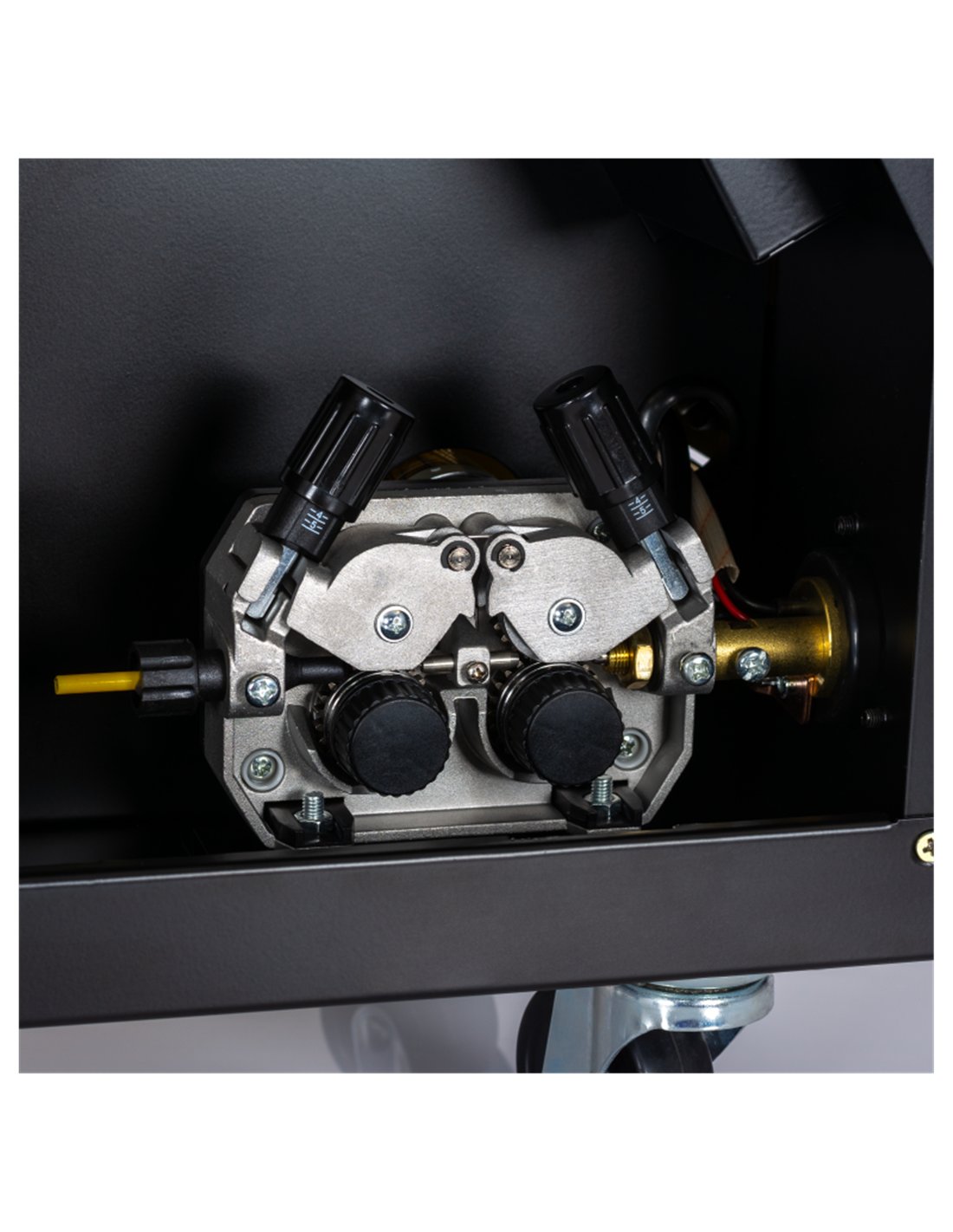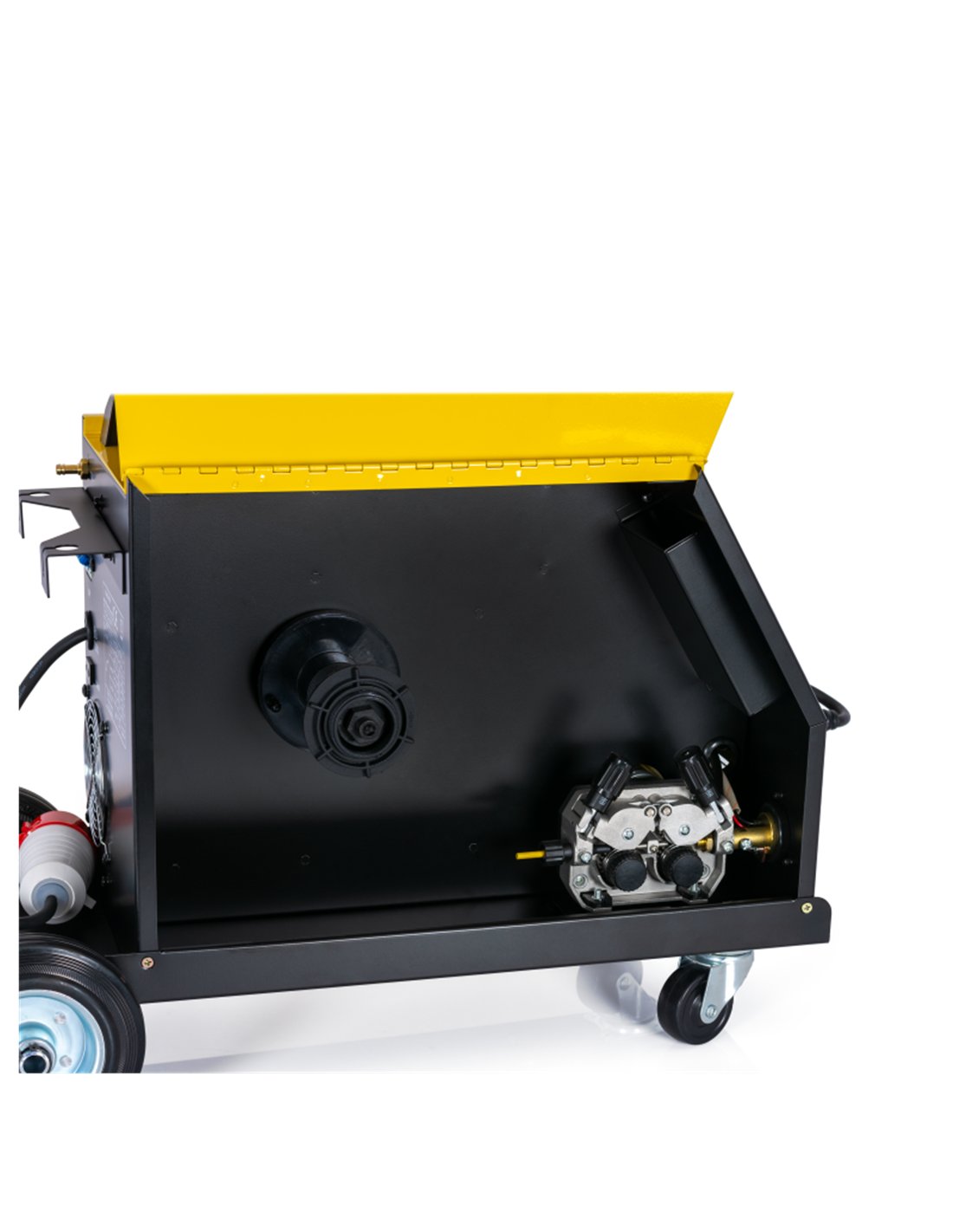 Urządzenie umożliwia spawanie stali niskowęglowej, niskostopowej, wysokostopowej, nierdzewnej, kwasoodpornej, aluminium i jego stopów oraz lutospawanie. MIG 250/2 Dual Puls Synergia oferuje zasilane zarówno z sieci 230 V, jak i 400 V. Spawarka posiada solidny metalowy podajnik 4X4. Zwarta i kompaktowa budowa z podwoziem jezdnym.