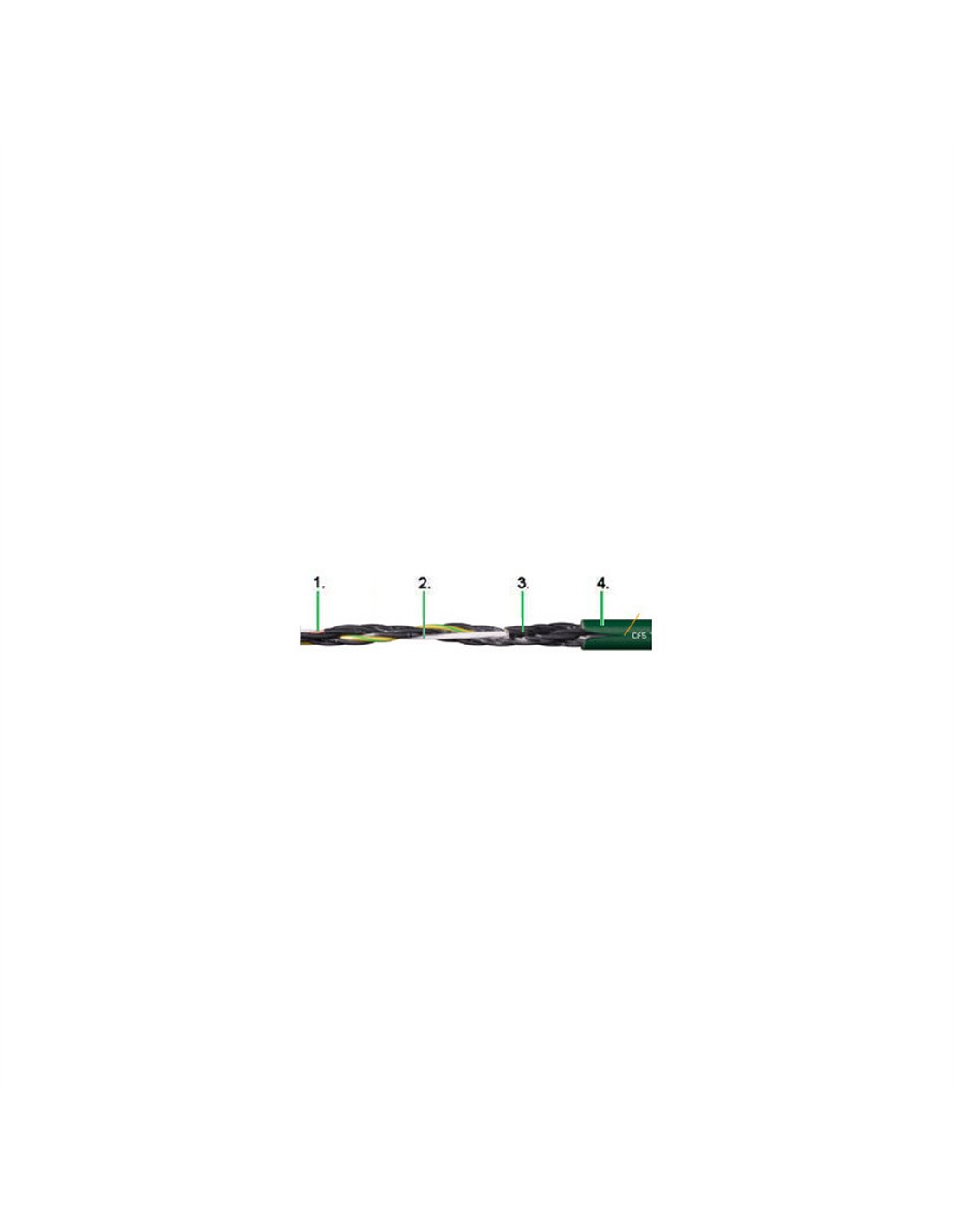Żyły skręcone w wiązki, które są następnie nawijane wokół centralnego elementu o wysokiej wytrzymałości na rozciąganie, wszystkie o zoptymalizowanych, krótkich skokach i kierunkach. Konstrukcja szczególnie odporna na skręcanie.