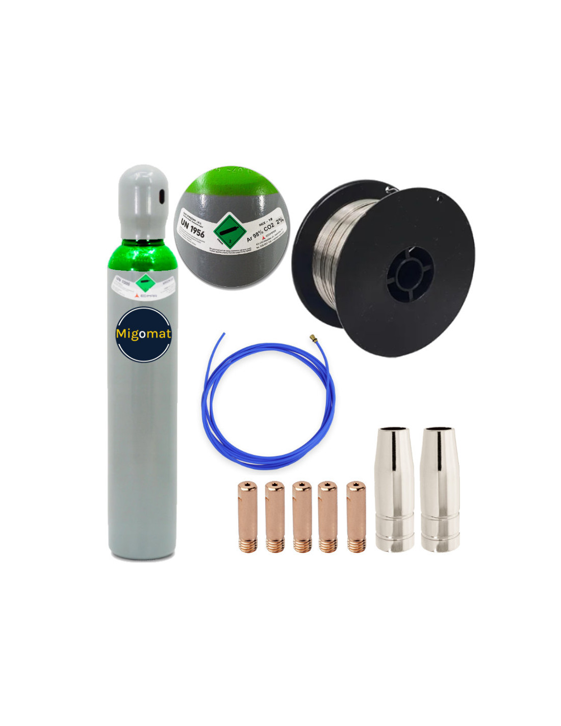 Uniwersalny zestaw do spawania stali nierdzewnej pasujący do większości migomatów na rynku. Dedykowany gaz , mieszanka gazów Ar/Co2 do spawania stali nierdzewnych metodą MIG/MAG.